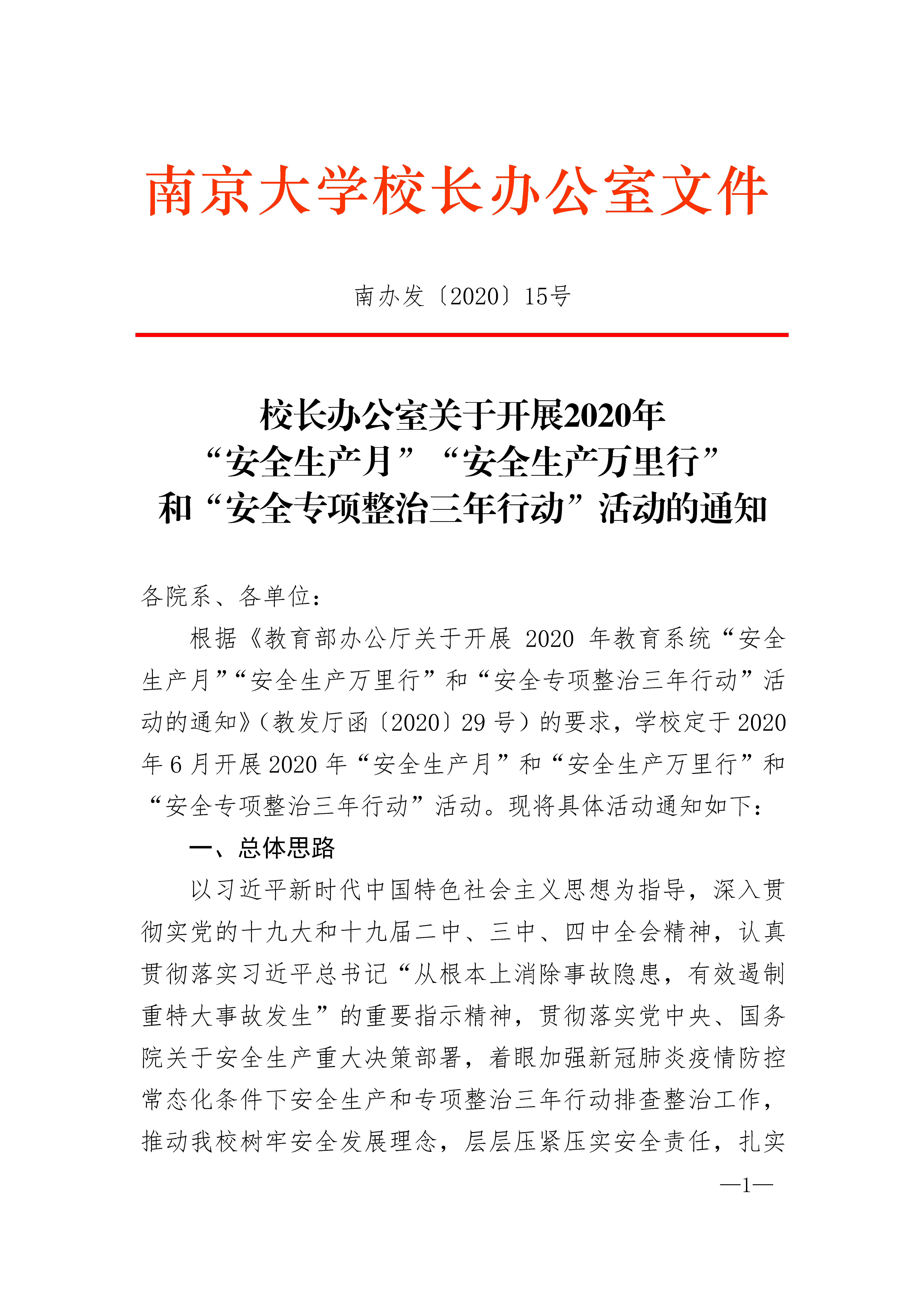校长办公室关于开展2020年“安全生产月”“安全生产万里行”和“安全专项整治三年行动”活动的通知